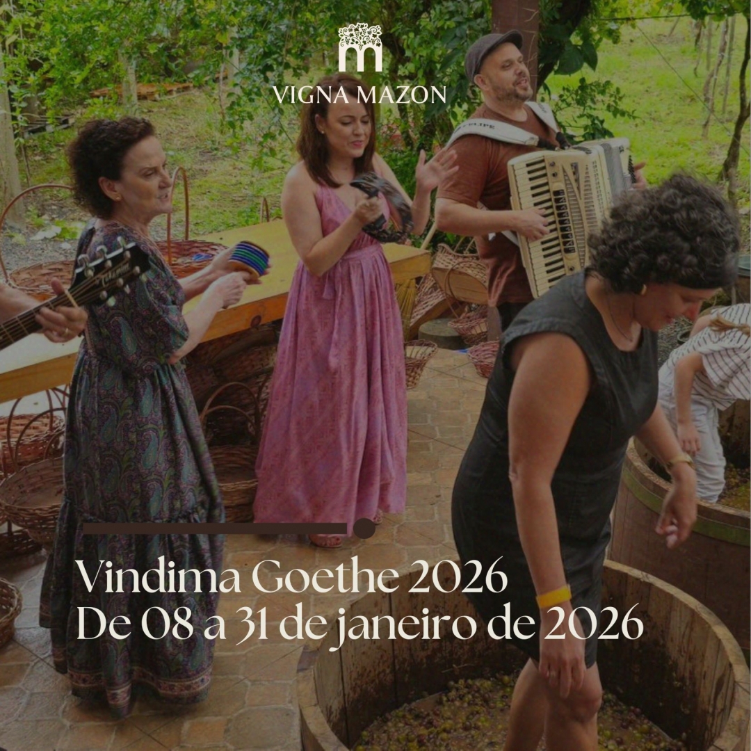 Para grupos que iniciam as atividades a partir do almoço, colheita, pisa e visita à vinicola realizadas a tarde.